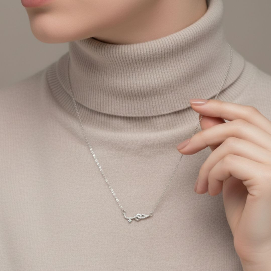 Your love story, hidden in plain sight. Elegantly crafted in flowing Arabic script, this signature necklace holds a meaning known only to the giver and the wearer —an intimate secret you carry close to your heart.